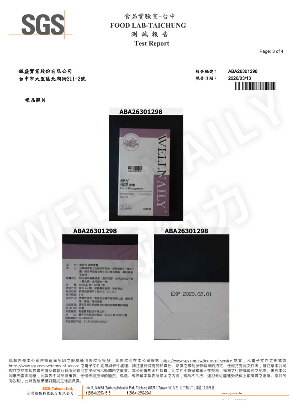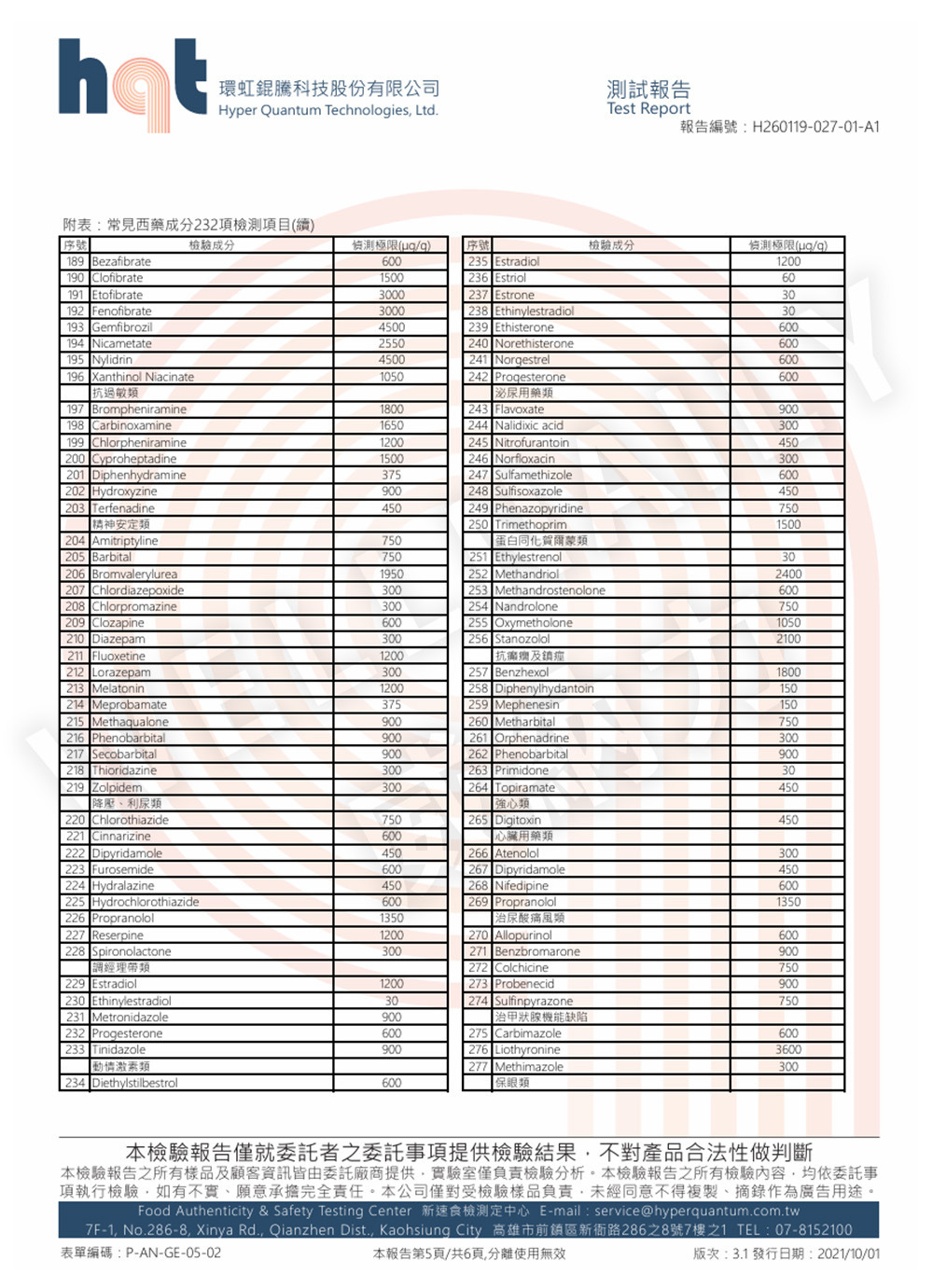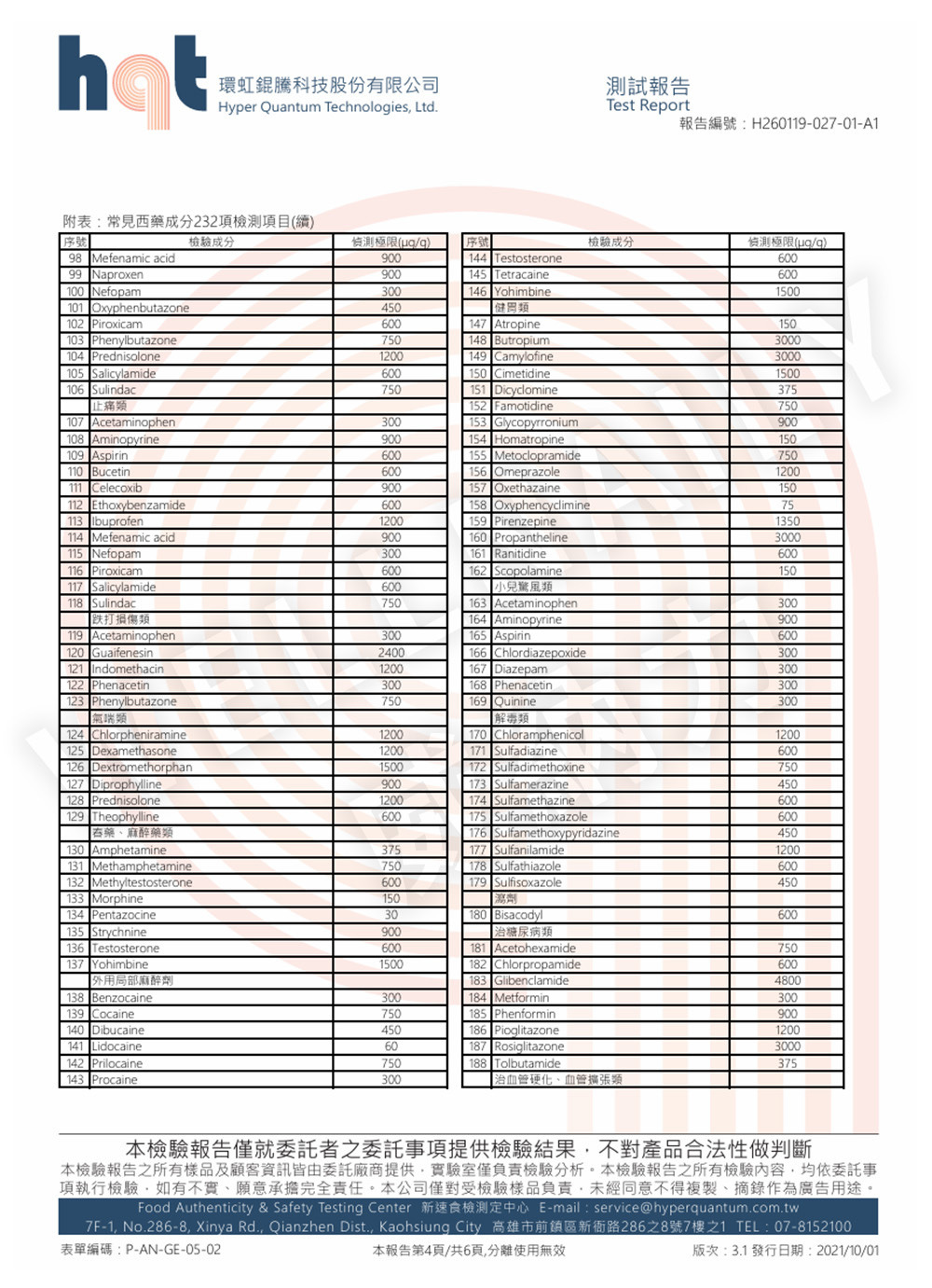 💡 檢驗報告僅對送測樣品負責,不代表功效宣稱。實際資訊請以包裝標示為準。
