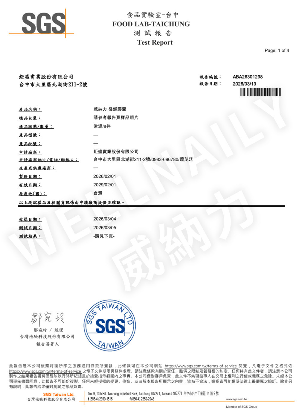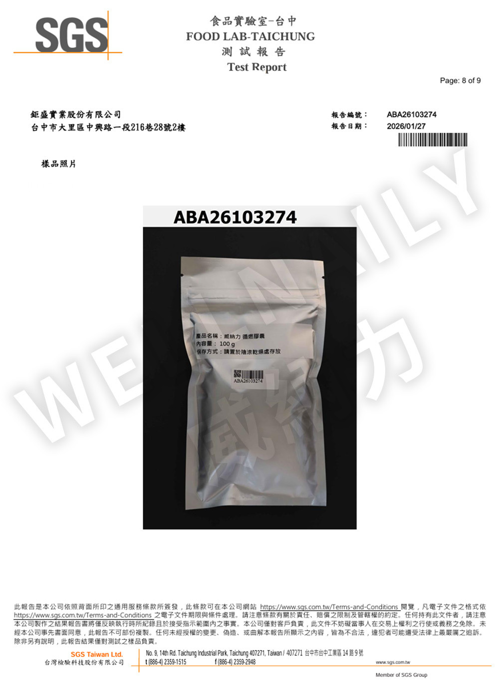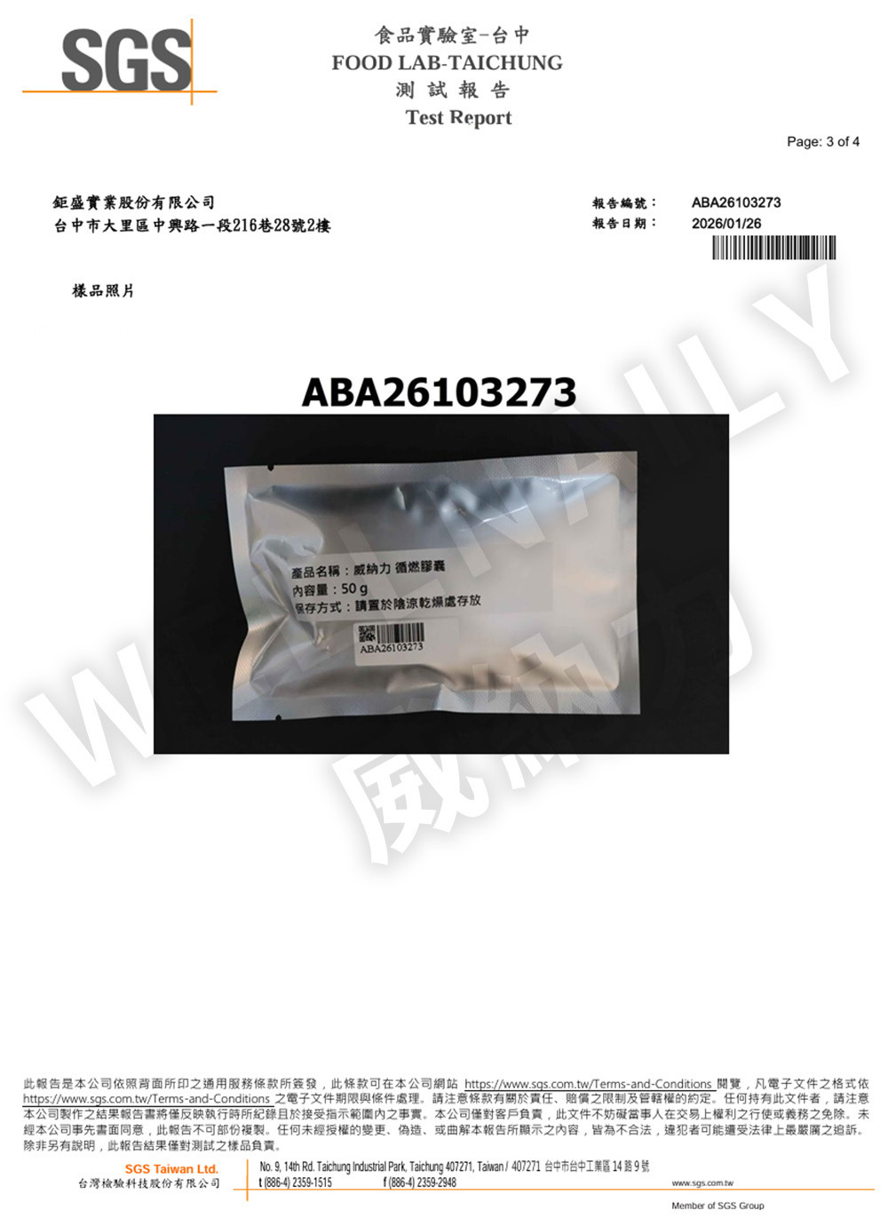 本頁公開威納力 循燃膠囊之完整檢測數據,提供透明資訊供查閱。