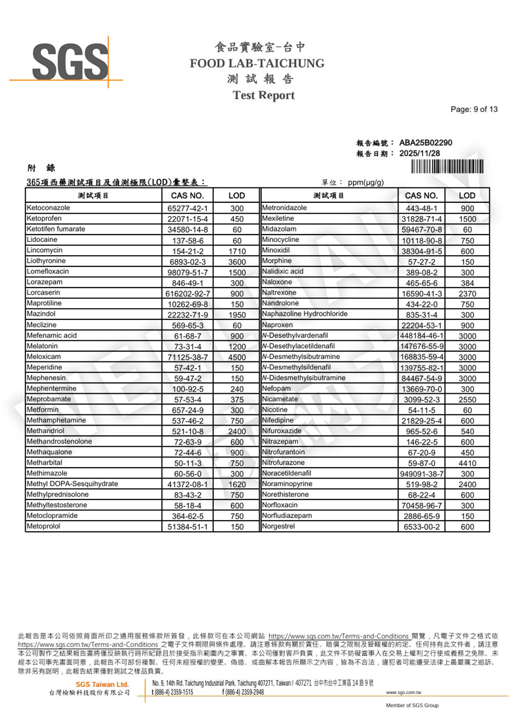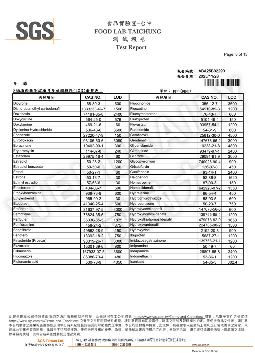 三、 365項西藥檢測報告