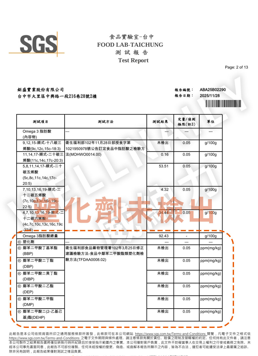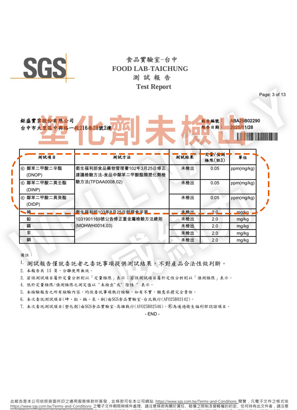 二、 塑化劑檢測報告