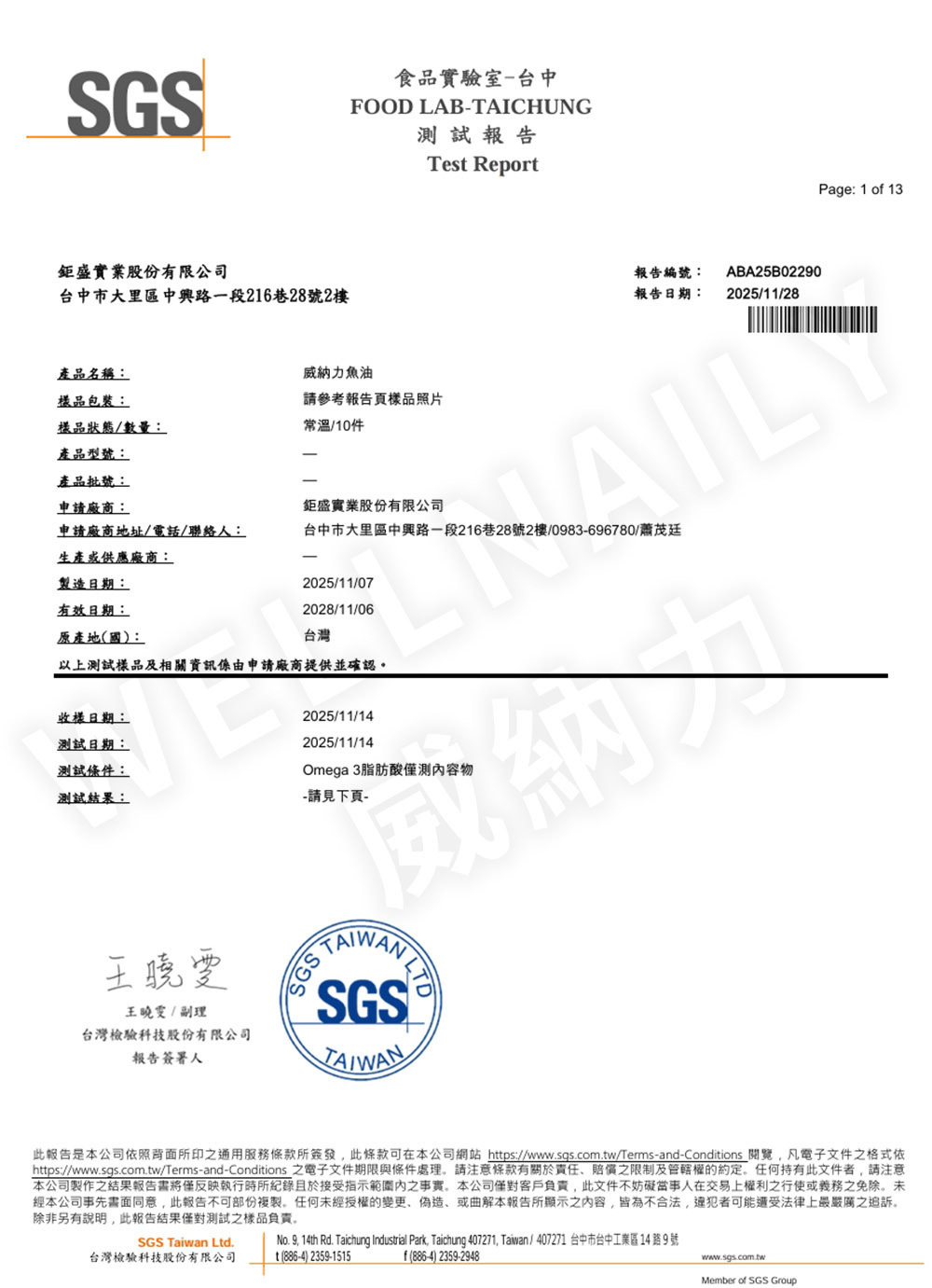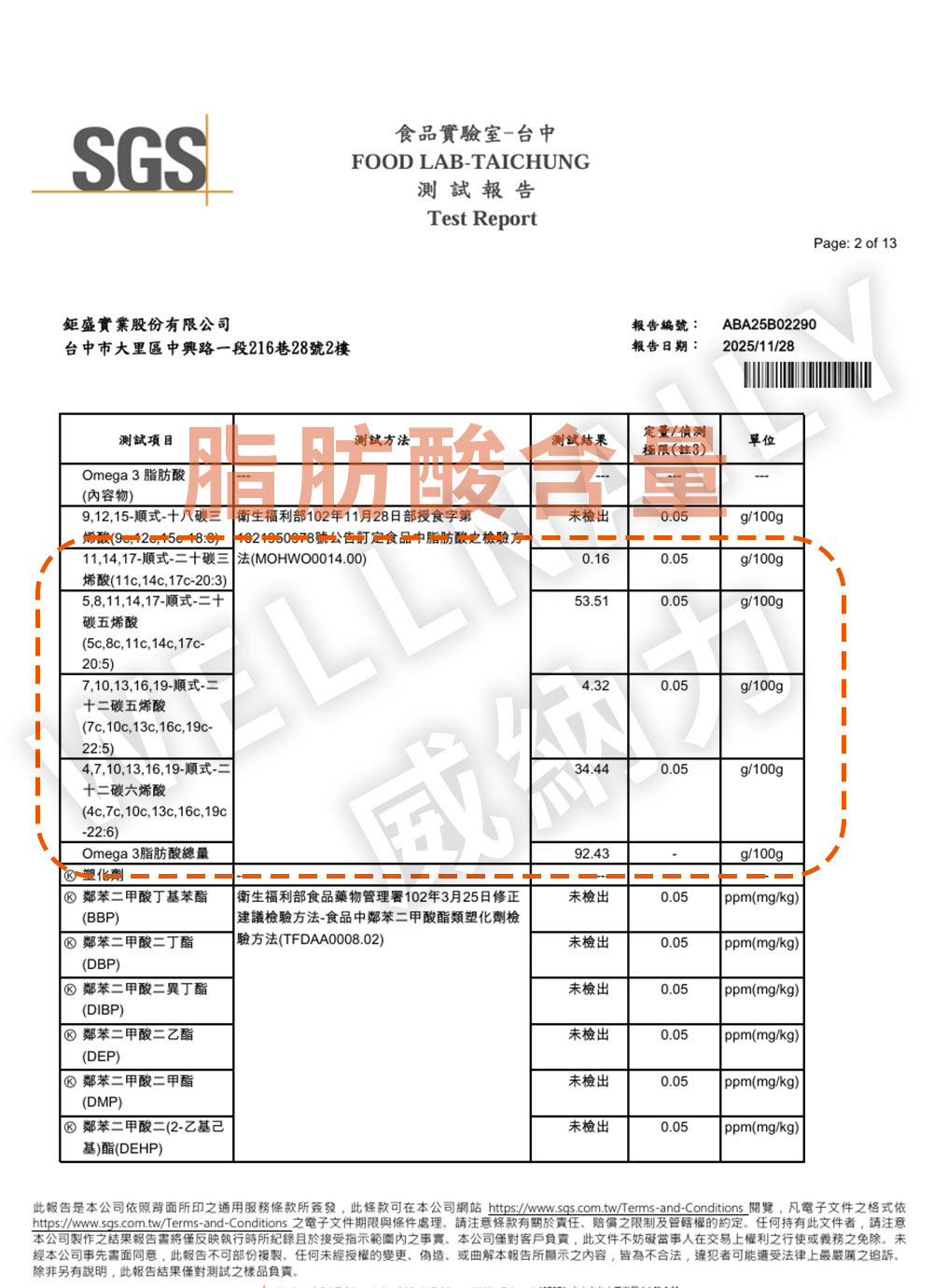 本頁公開威納力 85% 魚油之完整檢測數據,提供透明資訊供查閱。