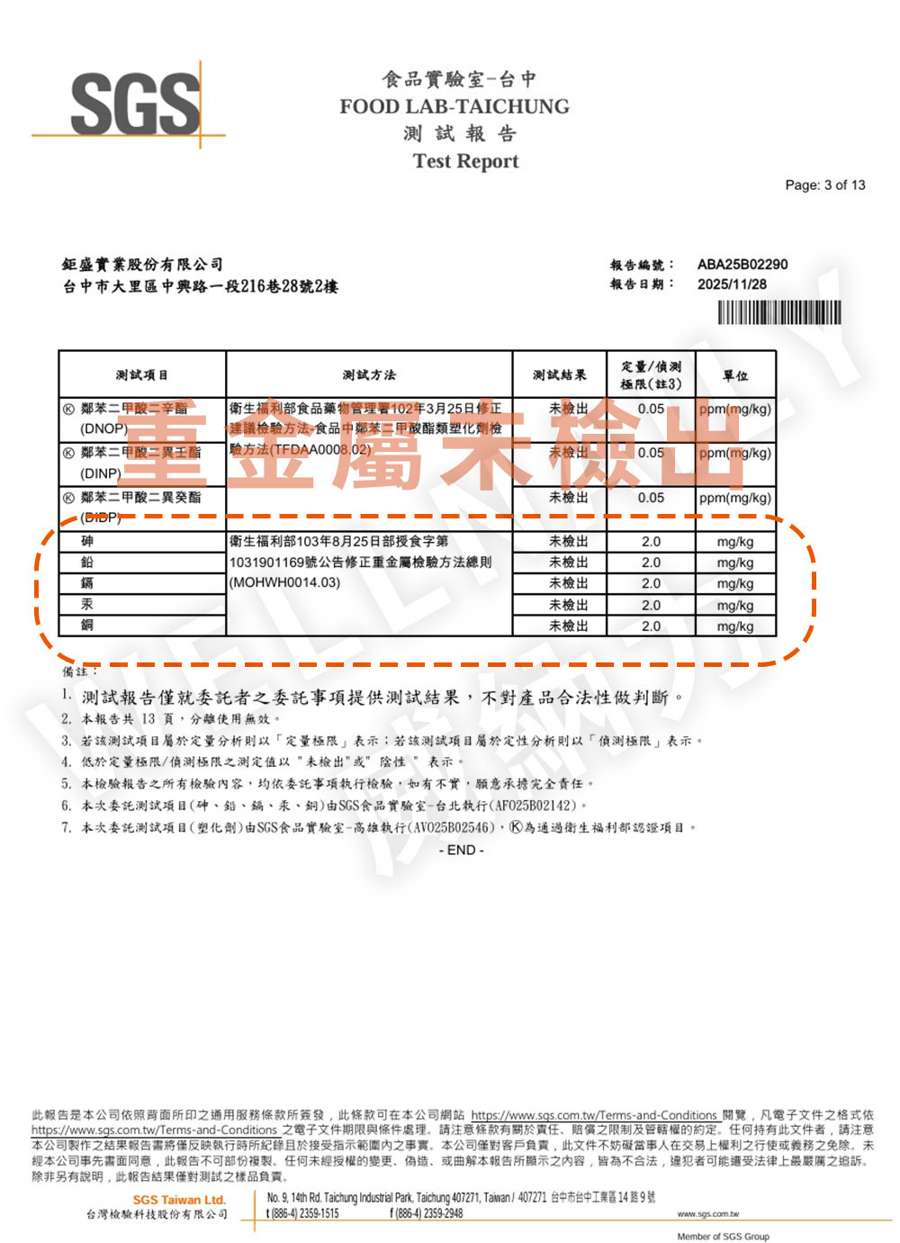 一、 重金屬檢測報告