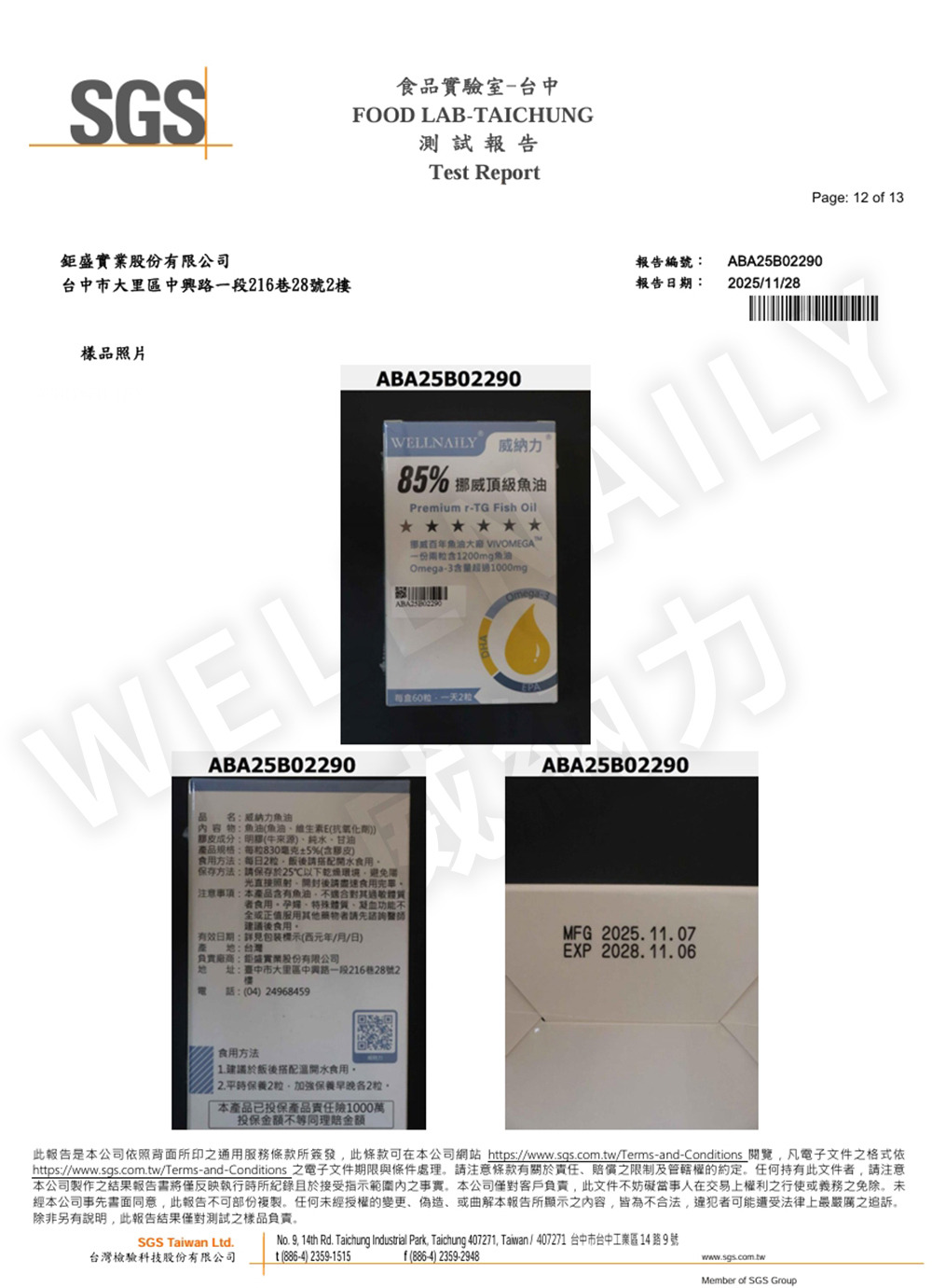 85% 挪威頂級魚油|SGS 第三方檢驗報告