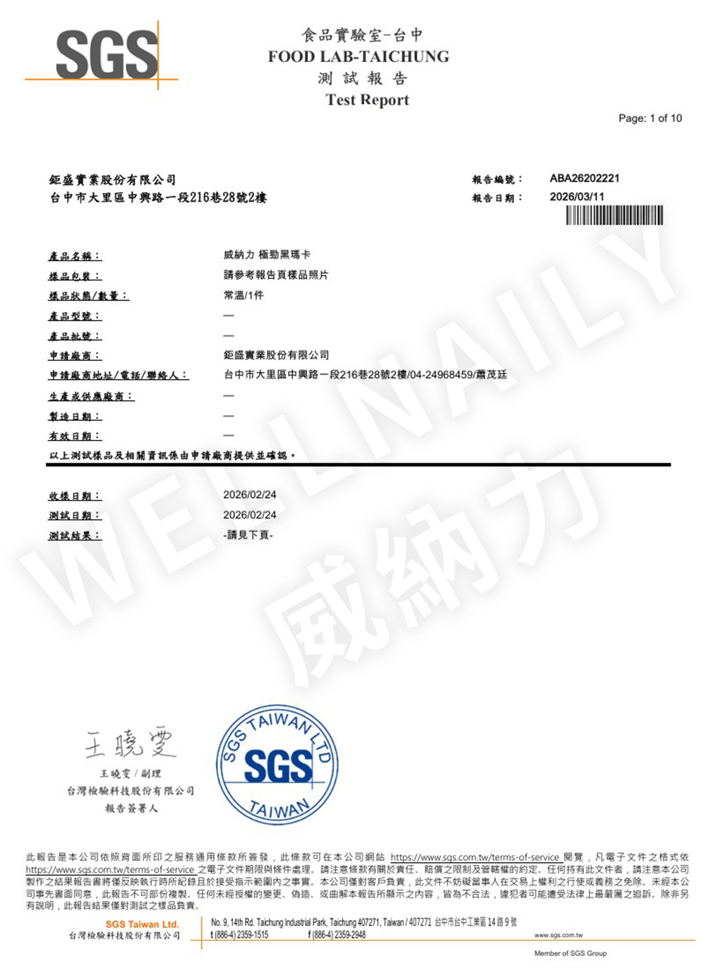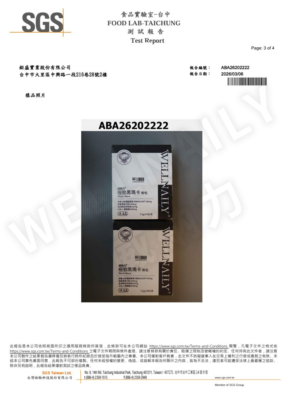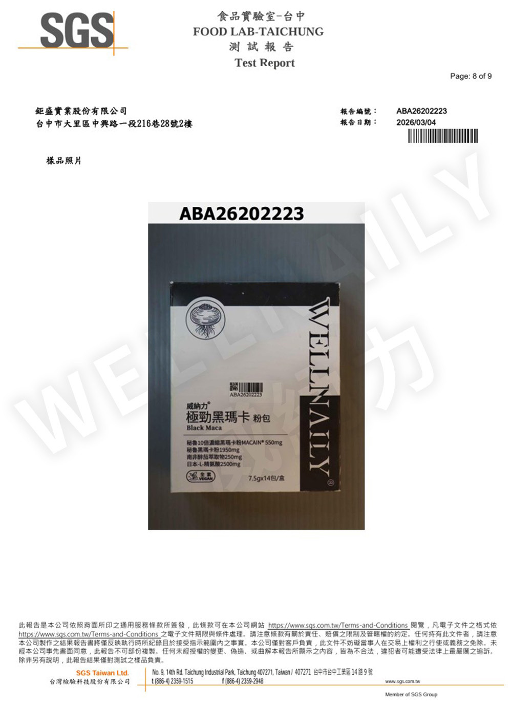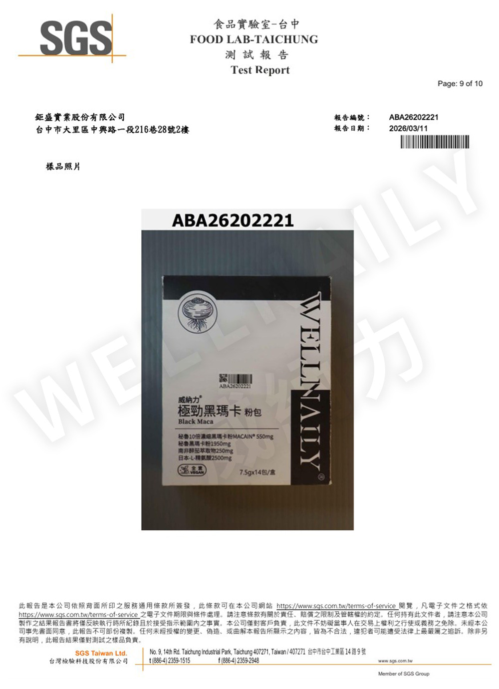 威納力 極勁黑瑪卡粉包|SGS 第三方檢驗報告