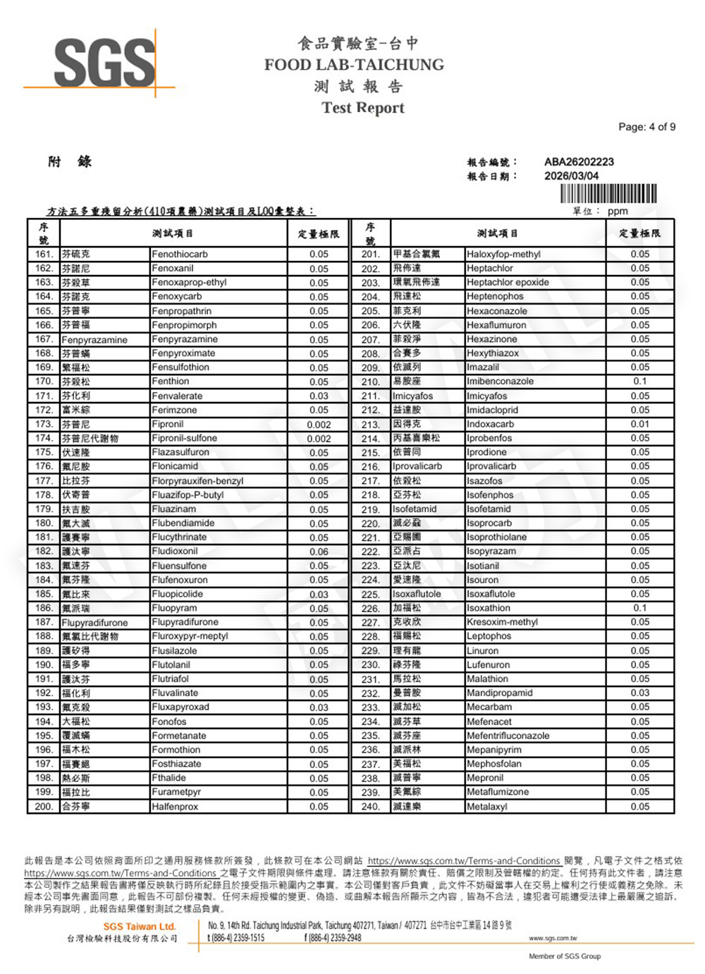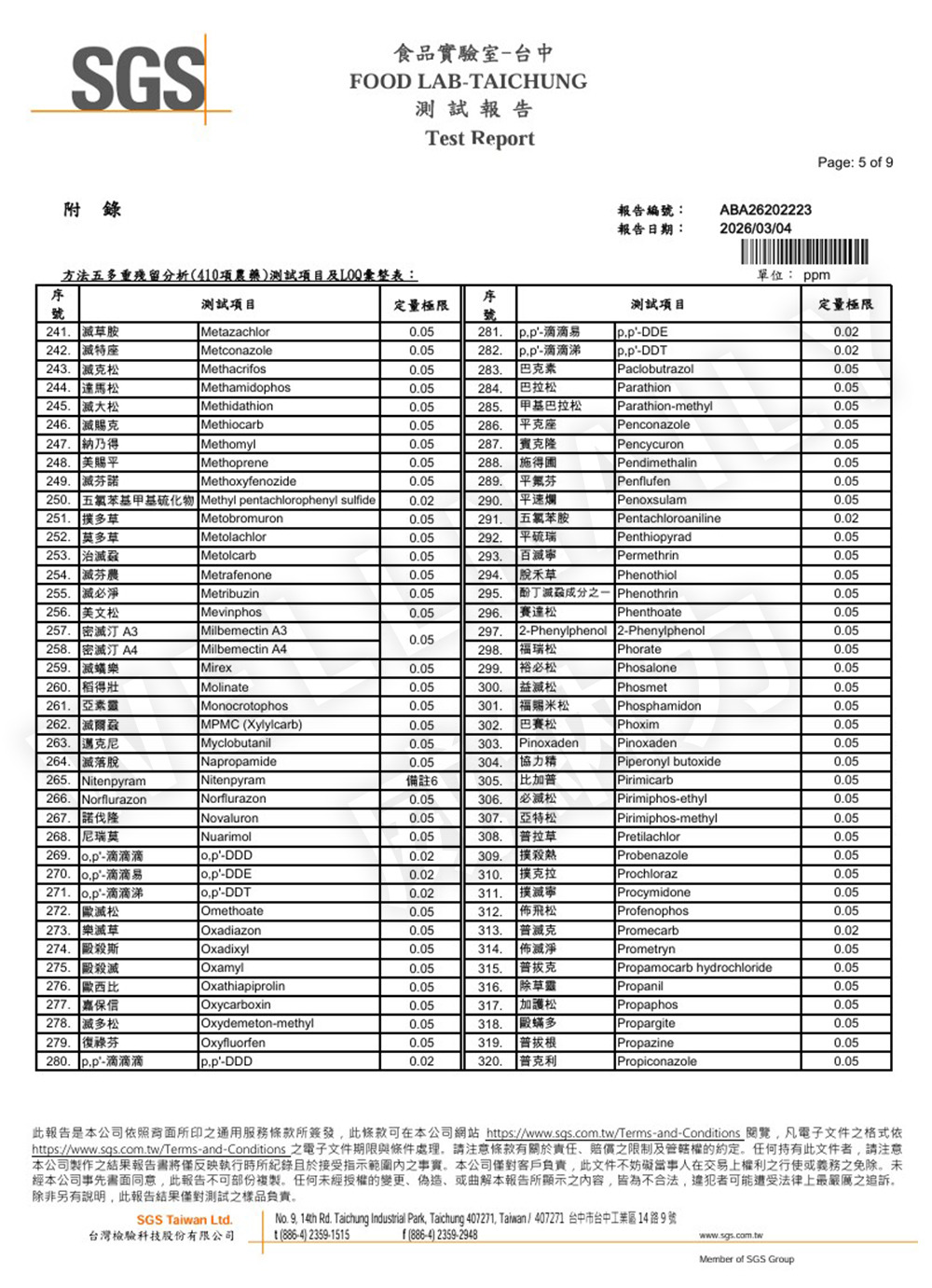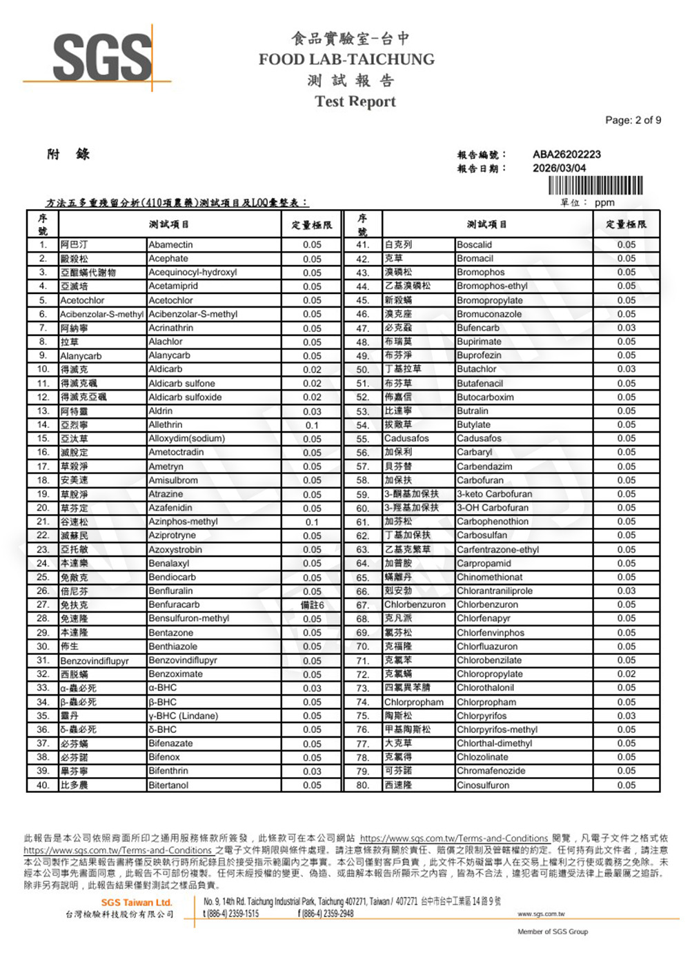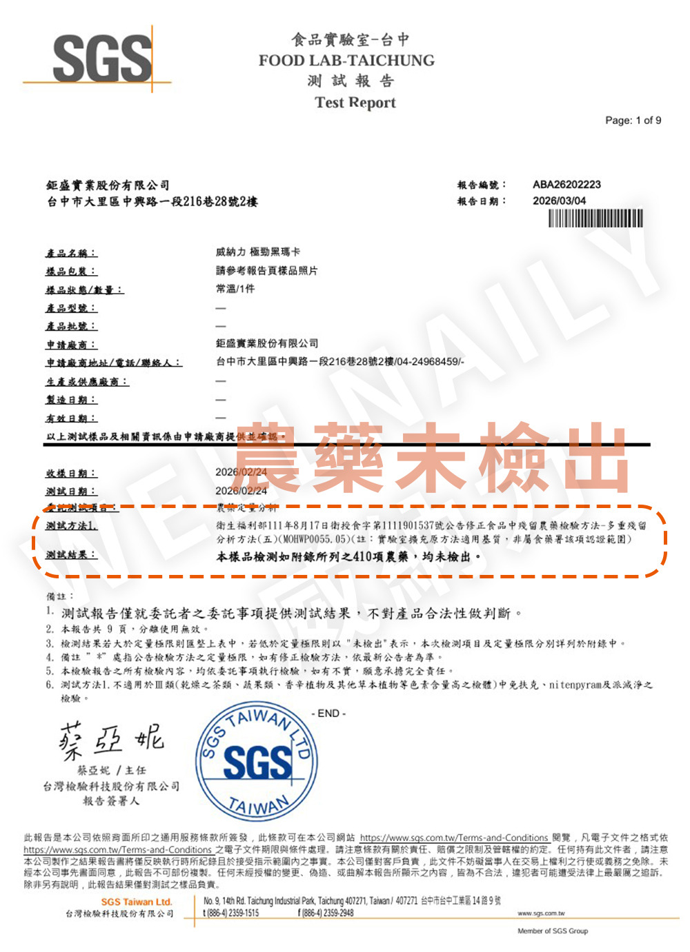 一、 農殘檢測報告