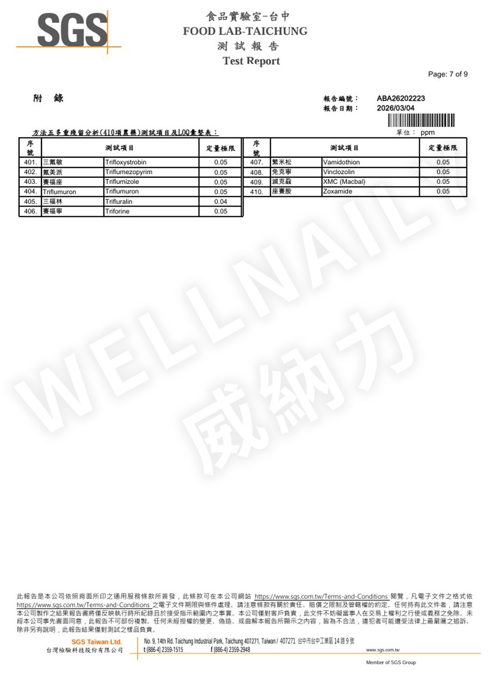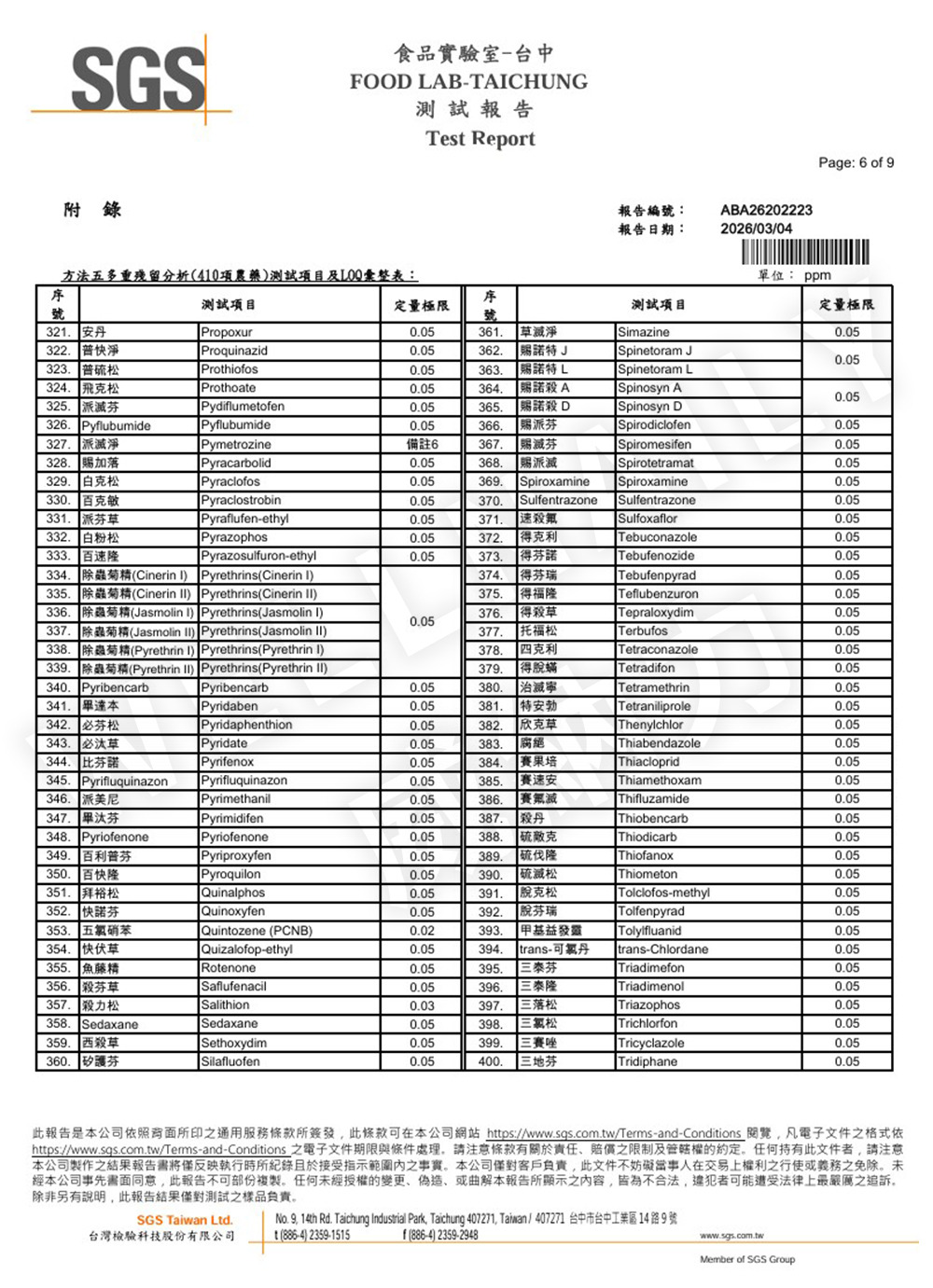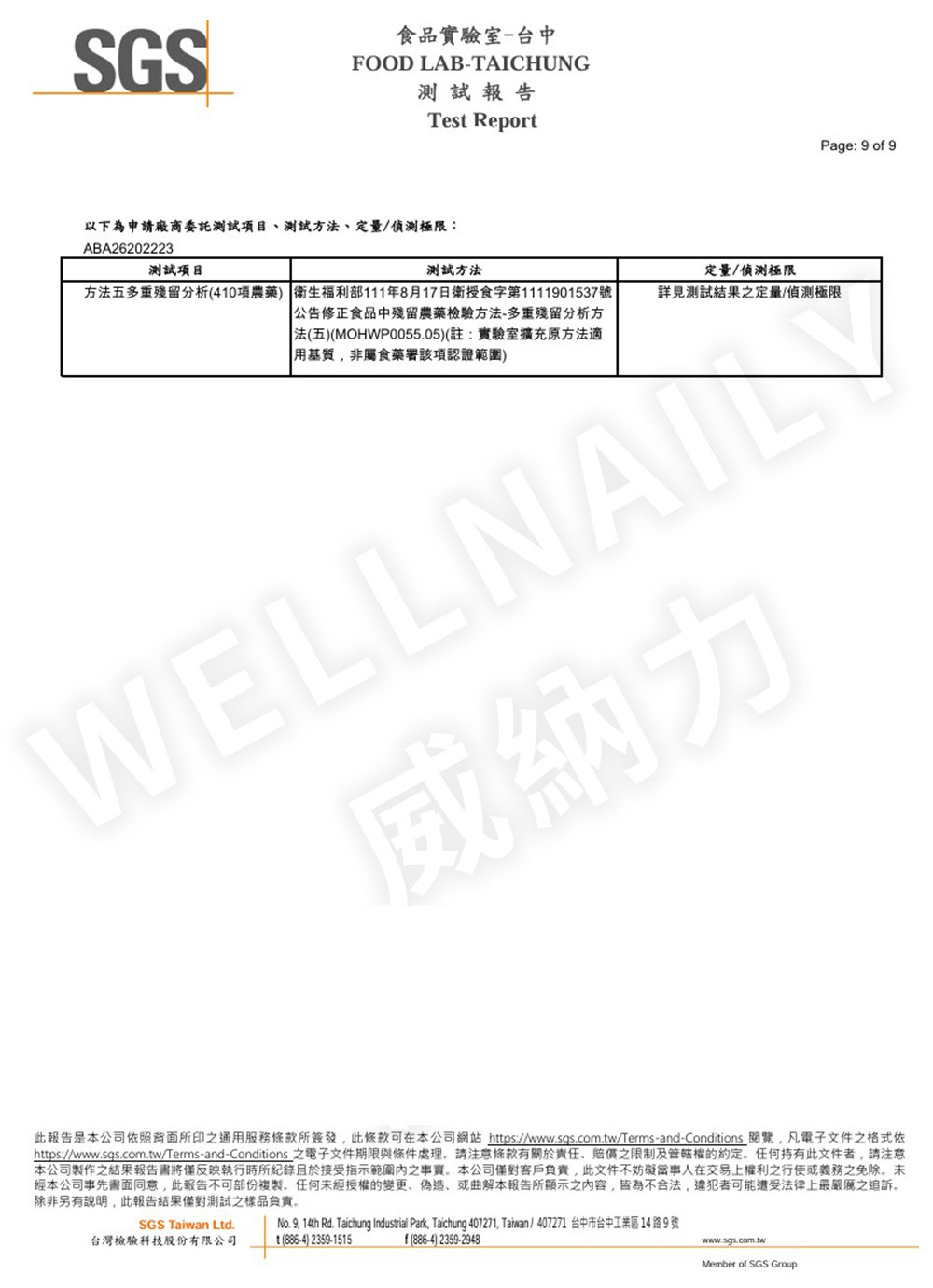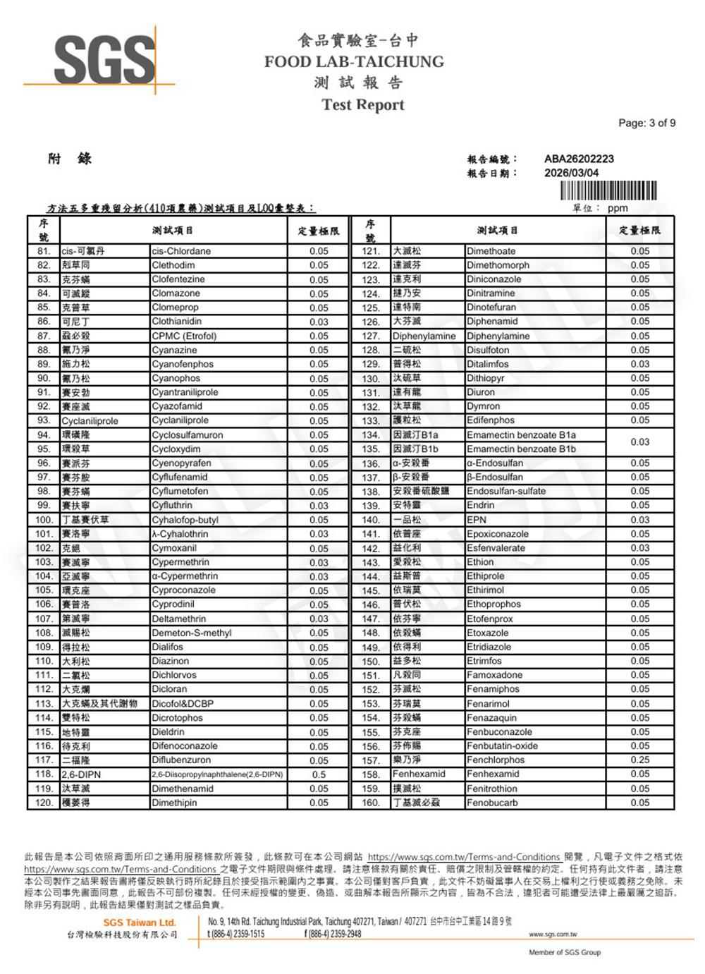 一、 農殘檢測報告