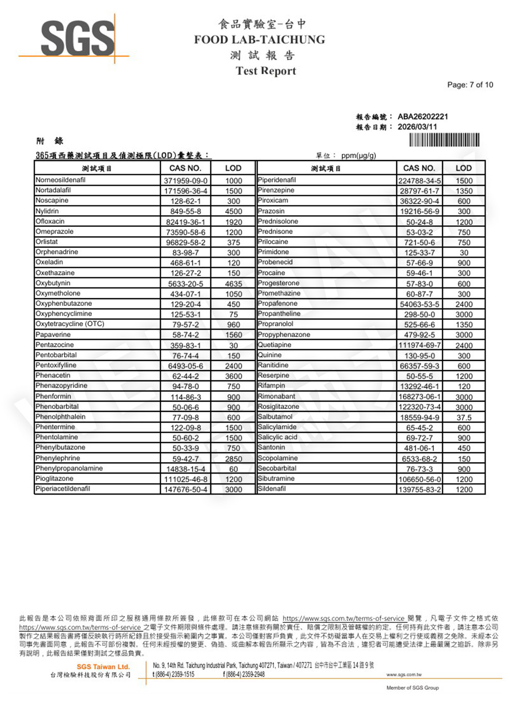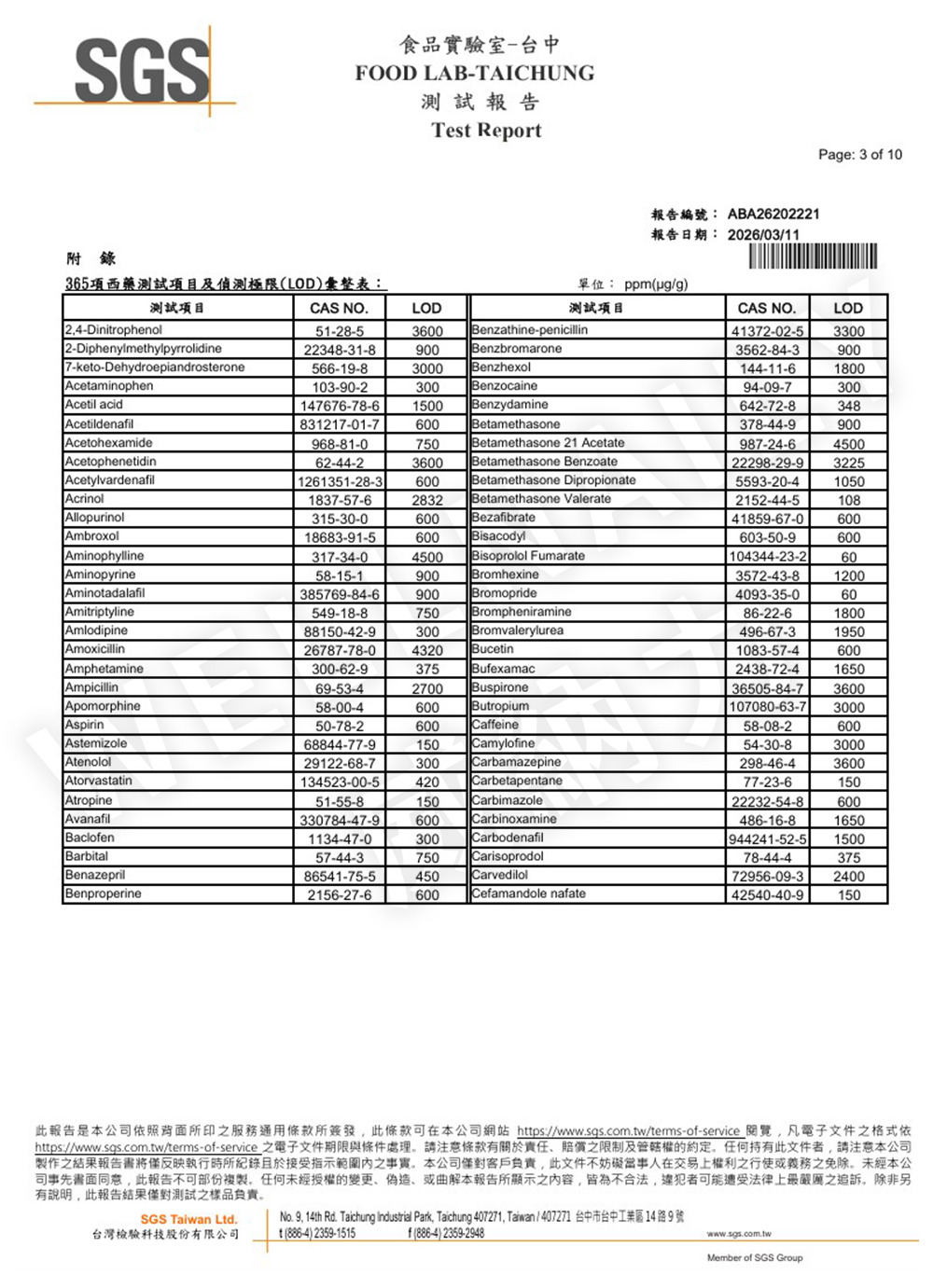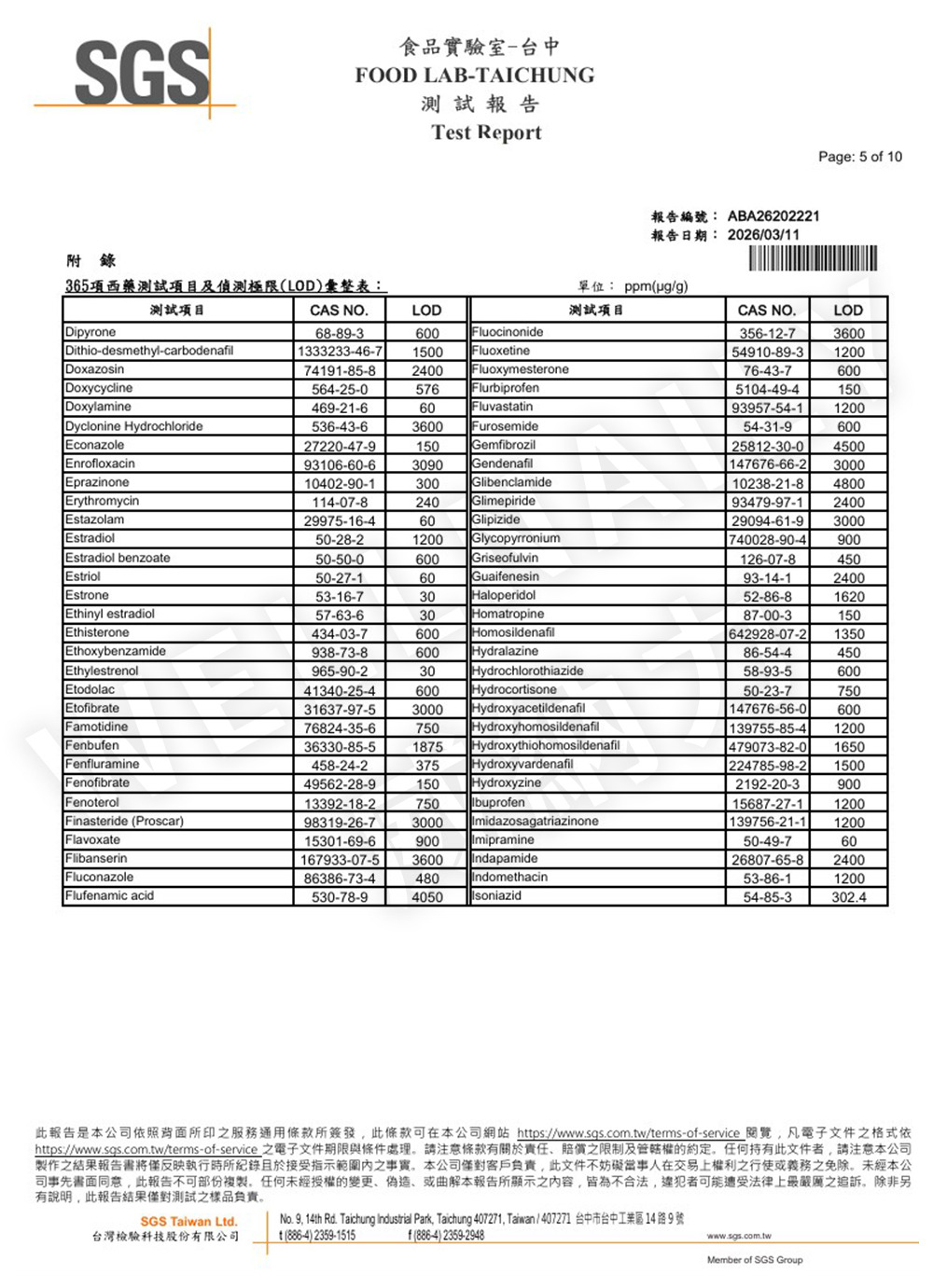 二、 365項西藥檢測報告