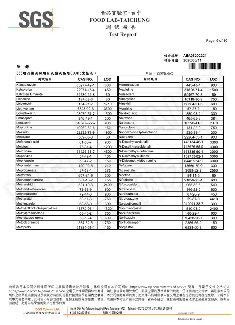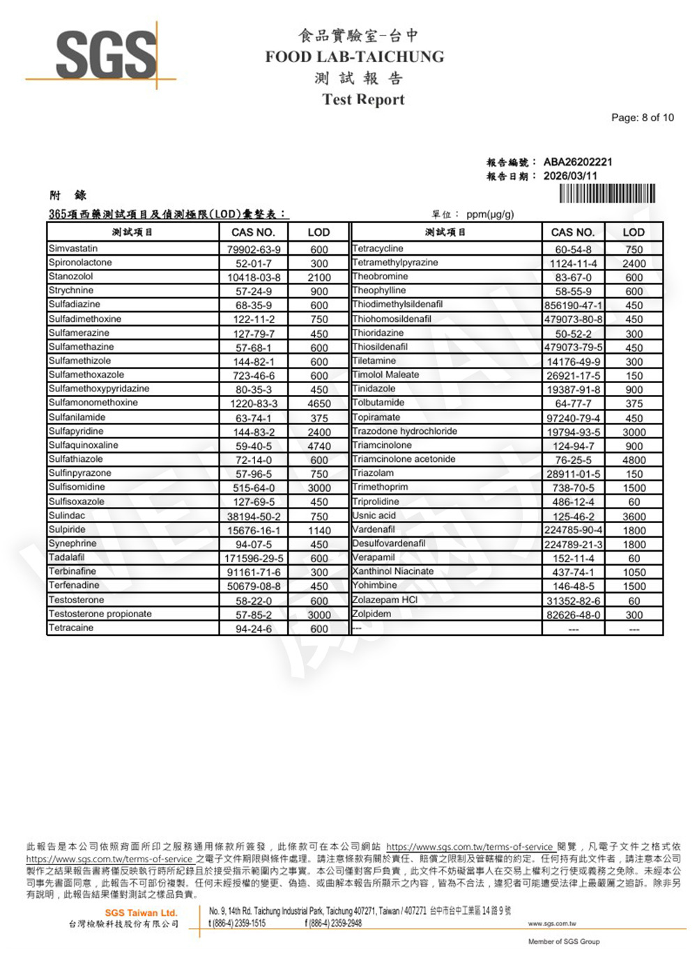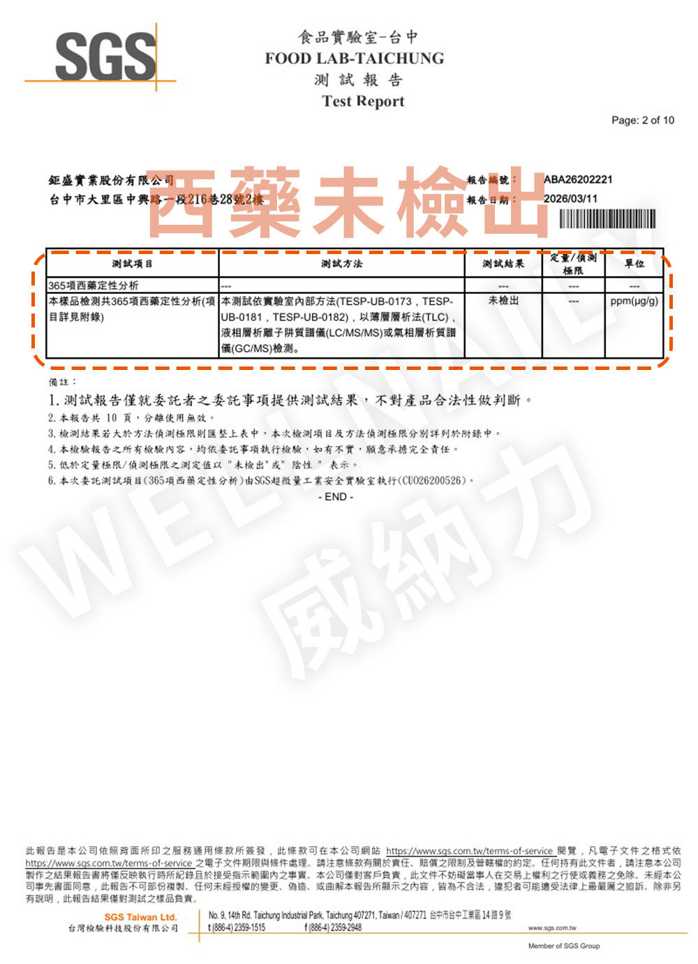 💡 檢驗報告僅對送測樣品負責,不代表功效宣稱。實際資訊請以包裝標示為準。