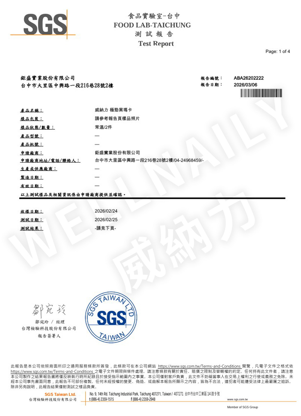 本頁公開威納力 極勁黑瑪卡粉包之完整檢測數據,提供透明資訊供查閱。